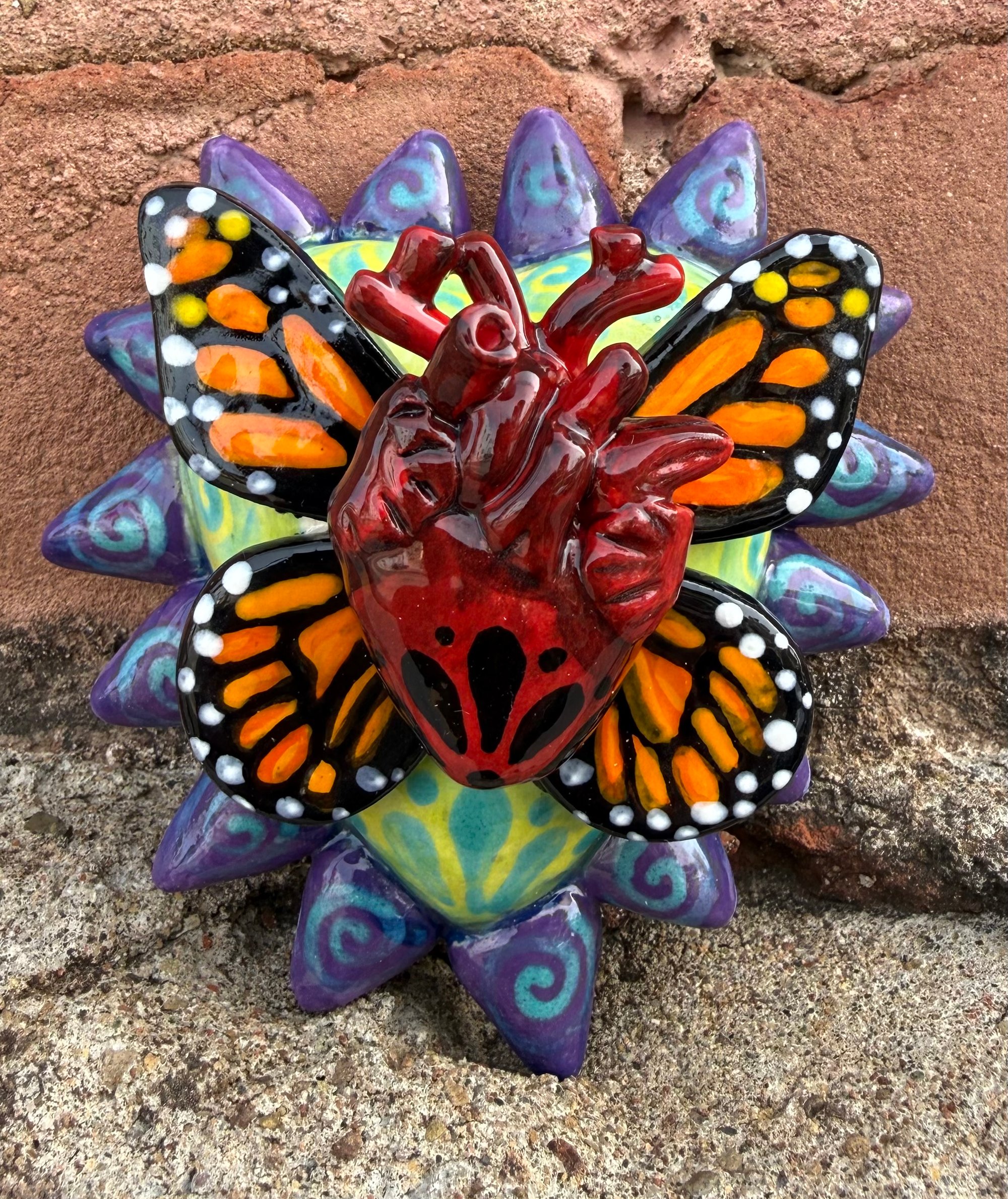 Hand built using low fire clay and velvet underglazes. Approximately 3.25 in x 4in Hole in back for secure hanging on wall.